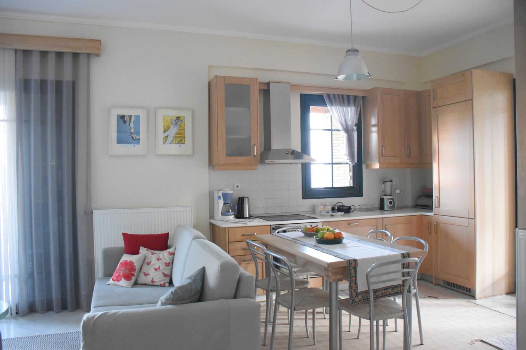 Three separate apartments await you, two on the ground floor and one on the first floor, with capacity of three(3), four(4) and five(5) people each.