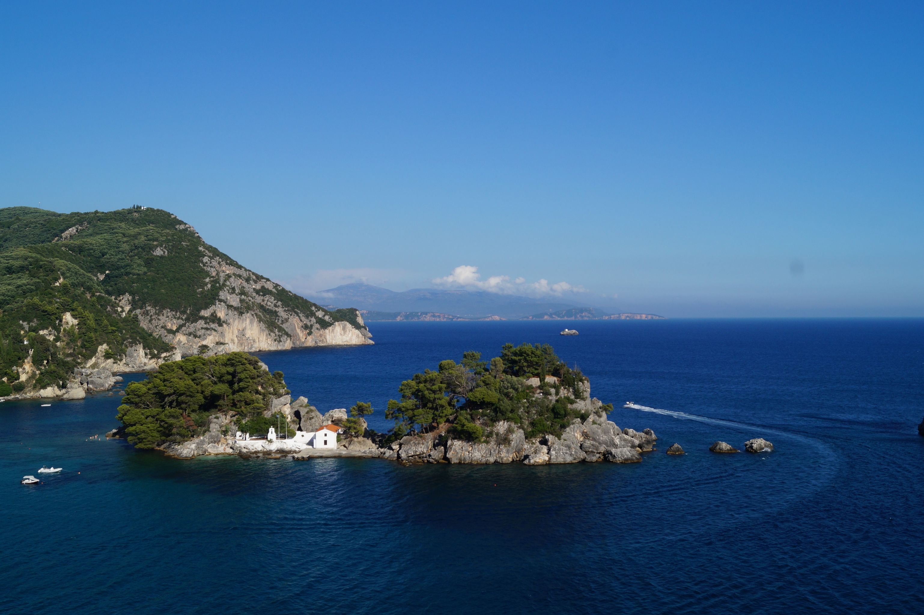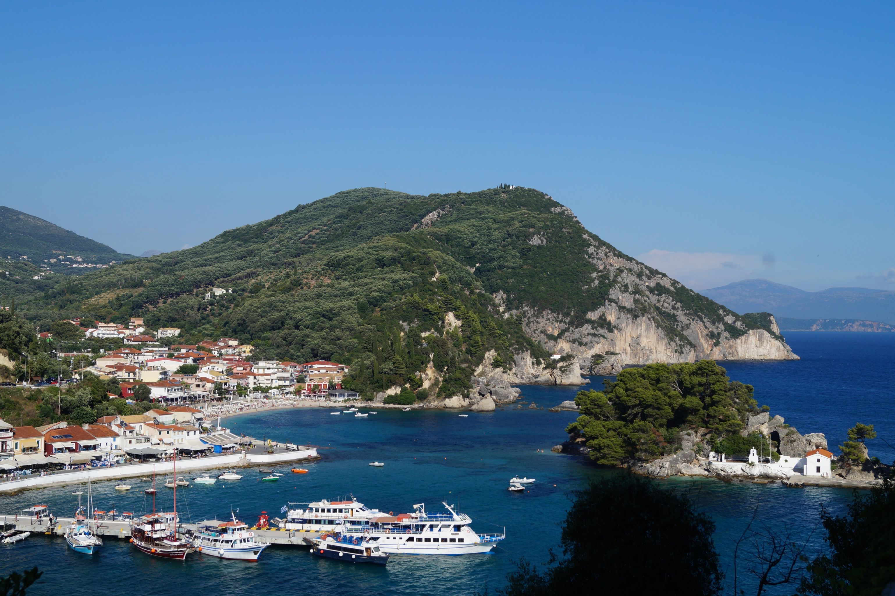 From the castle you have a breathtaking view down on Parga and the small island with the church Panagia.